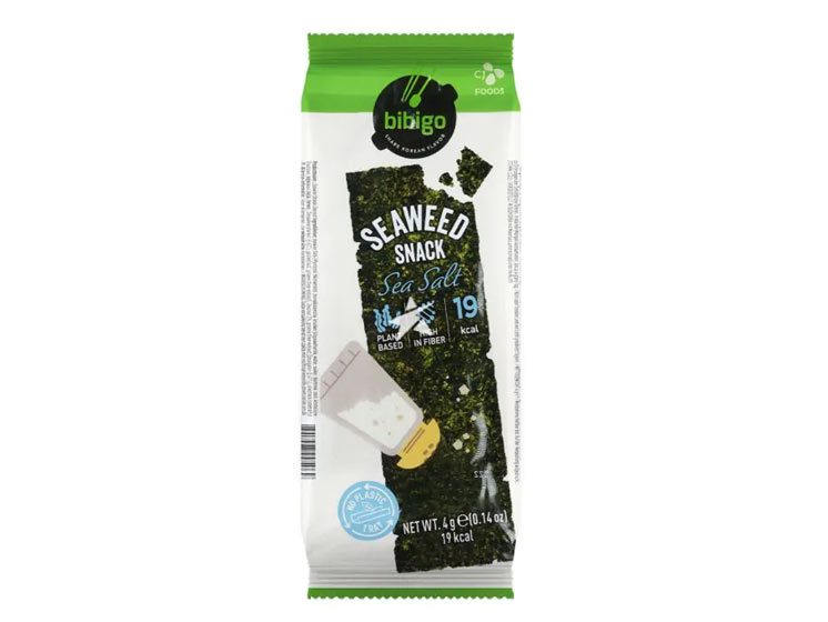 Bibigo Seaweed Snack Sea Salt Flavor kan avnjutas som en självständig snack eller användas som topping på sallader eller risrätter.