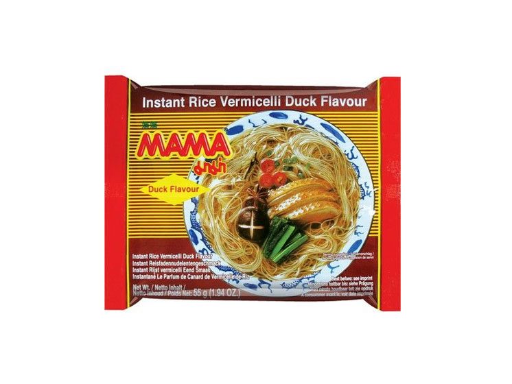 Mama Instant Rice Vermicelli Duck är ett populärt mellanmål i Thailand och andra delar av Sydostasien. Den är uppskattad för sin bekvämlighet och den smakrika buljongen.