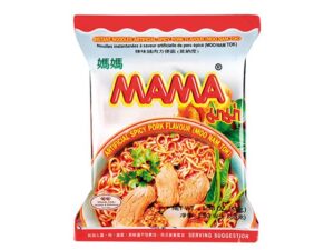Ris 67%, socker, salt, palmolja, tapiokastärkelse, jäst SOJABÖNpulver, vitlök, chilipulver, smakförstärkare: E621, E635, syra: E330, färgämnen: E162, E160c, torkad purjolök.