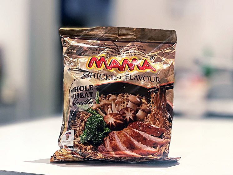 Fullkornsmjöl 51% (Amerika, Kanada), VETEmjöl, palmolja, salt, surhetsreglerande medel: E500, E501, E451, förtjockningsmedel: E466. Kryddpulver (3 g): salt, socker, smakförstärkare E621, E635, kryddor, torkade vårlökar, kycklingsmak 0,2%, färgämne: E150a. Kryddolja (2,8 g): palmolja, vitlök. Chilipulver (0,2 g): chilipulver.