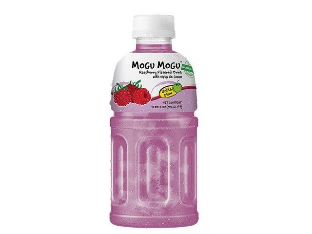 Vatten, kokosgelé (15%) (kokos, vatten, socker, surhetsreglerande medel (E260)), fruktos, socker, surhetsreglerande medel (E330, E327), hallonjuice (0,1%), koncentrat (morot, sötpotatis, rädisa), arom (hallon), konserveringsmedel (E211), geleringsmedel (E418), färgämnen (E160a, E133).