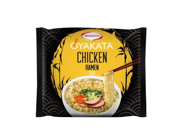 Nudlar: VETEmjöl, palmolja, modifierad stärkelse, salt, jäsmedel (E500, E501). Kryddor: smakförstärkare (E621, E635), salt, kycklingextraktpulver (kycklingextrakt, maltodextrin, salt), arom, maltodextrin, socker, vitlökspulver, SOJAsåspulver (SOJAbönor, VETE, maltodextrin, salt), jästextrakt, SESAMfrön, svartpeppar, färgämnen (E150c, E100), antioxidant (E330). Innehåller vete, soja och sesam. Kan innehålla mjölk, ägg, selleri, senap, blötdjur, kräftdjur, fisk, svavel och sulfiter.