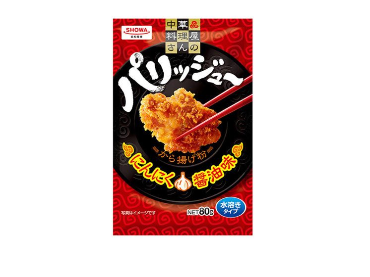 VETEmjöl, stärkelse, salt, vitlökspulver, SOJASÅSPULVER (SOJABÖNOR), glukos, socker, svartpeppar, lökpulver, jästextraktpulver/modifierad stärkelse, mononatriumglutamat (E621), bakpulver, emulgeringsmedel [lecitin (SOJABÖNOR) (E322)], paprikafärg (E160c).
