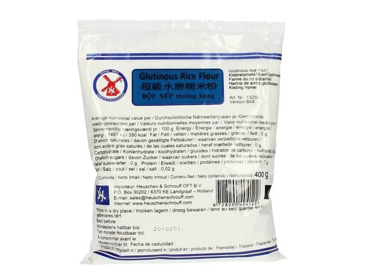 Wind Mill Glutinous Rice Flour är inte en direkt ersättning för vetemjöl eftersom det inte innehåller gluten. Det passar bäst till desserter och snacks.